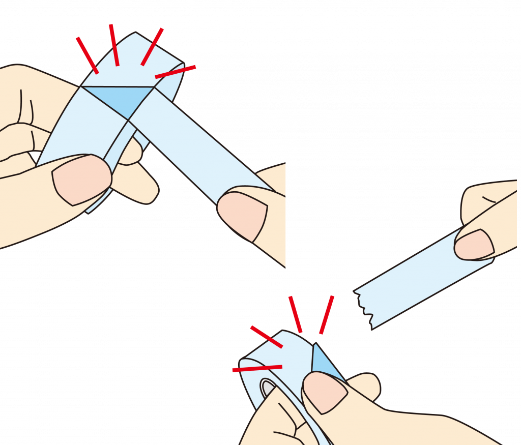 ●ガムテープやマスキングテープなどをキレイにカットする…テープを使用したい長さまで引き出し、カットしたい部分を粘着同士を合わせるように90度に折り曲げます。2枚の合わさったテープの縁が刃のような役割に。カットしたいテープ部分を下に引っ張るようにすると、切り口が比較的キレイにカットできます。