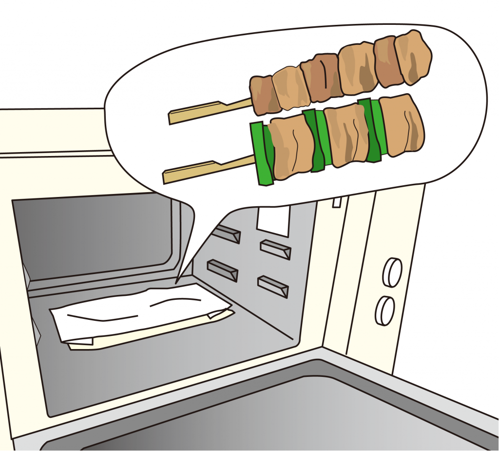 ●買った焼き鳥を美味しく温めたい…ラップより、クッキングシートで包むようにして温めると、蒸気がこもり、蒸されたようにふっくらと温まります。1本につき、500Wで25~30秒が目安です。