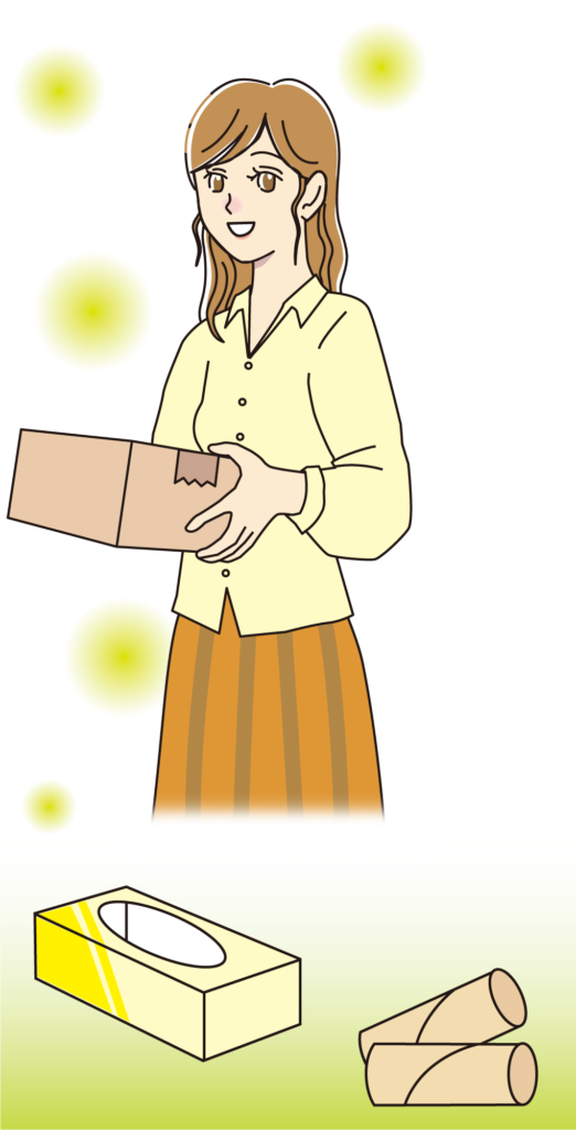 たとえば、お菓子やティッシュの箱(取り出し口のビニールは取る)、トイレットペーパーの芯、不要なカタログやカレンダーの紙などは、雑紙として出すことができます。